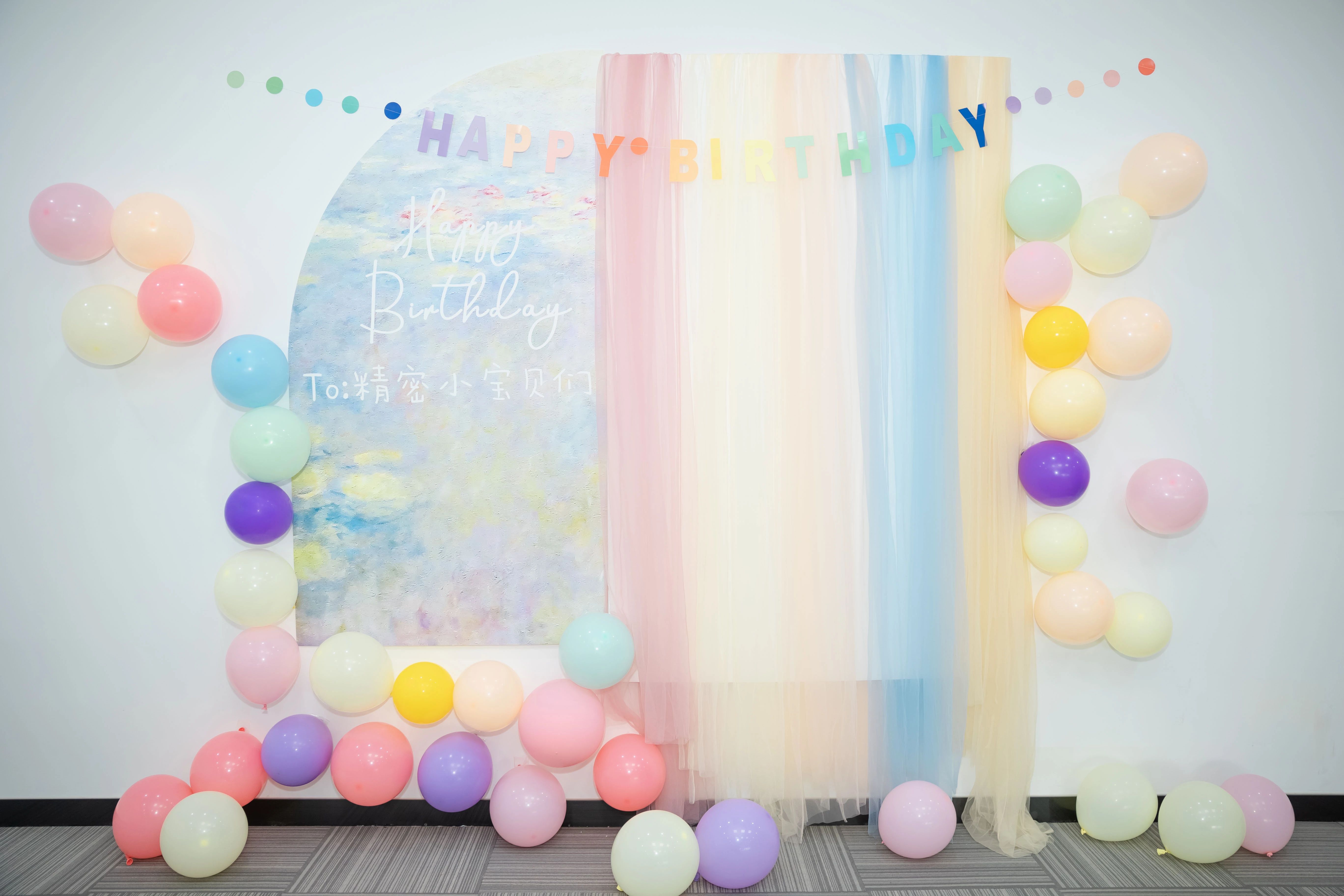 馬卡龍色氣球簇擁著莫奈睡蓮般的背景板,柔和光線輕拂過寫著 “To:精密小寶貝們” 的俏皮掛飾,甜蜜蛋糕靜候主角登場。每一處裝飾都承載著美好祝愿,每一抹色彩都傳遞著幸福溫度,讓壽星們沉浸在無與倫比的幸福之中。