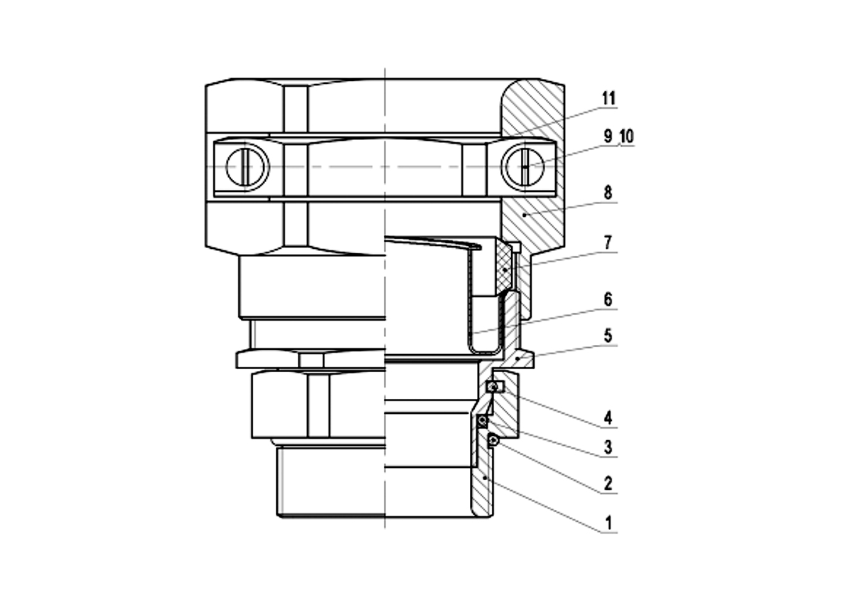 目前國內外現有的金屬軟管接頭,有鋅合金材質的鑄造件、黃銅鍍鎳材質的加工件等,結構簡單,無360度旋轉、鎖緊功能,螺紋連接的強度較低,尤其是高強度、重載或所適配的金屬軟管及內部線纜較長的情況下,現有的金屬軟管接頭存在脫扣的情況,且在旋緊接頭時,需帶動所配金屬軟管及內部線纜同步旋轉,給現場安裝造成了極大的不便。同時,鋅合金材質的鑄造件表面采用非環保的鍍鋅處理,防腐性能很差;黃銅鍍鎳材質防腐能力較鋅合金材質好,但仍無法應用在高防腐要求的場合。綜合上述,現有的鋅合金及黃銅鍍鎳軟管接頭已無法滿足越來越多的客戶的需求。故開發了新結構的高強度、帶360度旋轉、高鎖緊功能、高耐腐性能金屬軟管接頭,為市場提供高性能的產品。