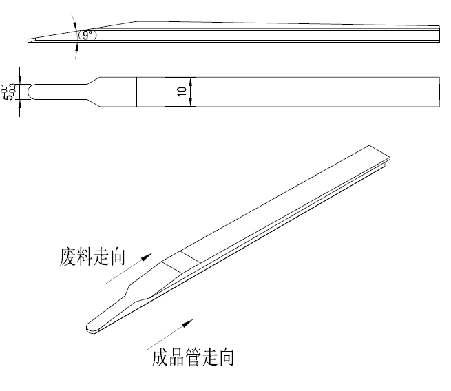關鍵詞:破口刀;單刃刀片;固定分離塊;廢料引導托;前窄后寬