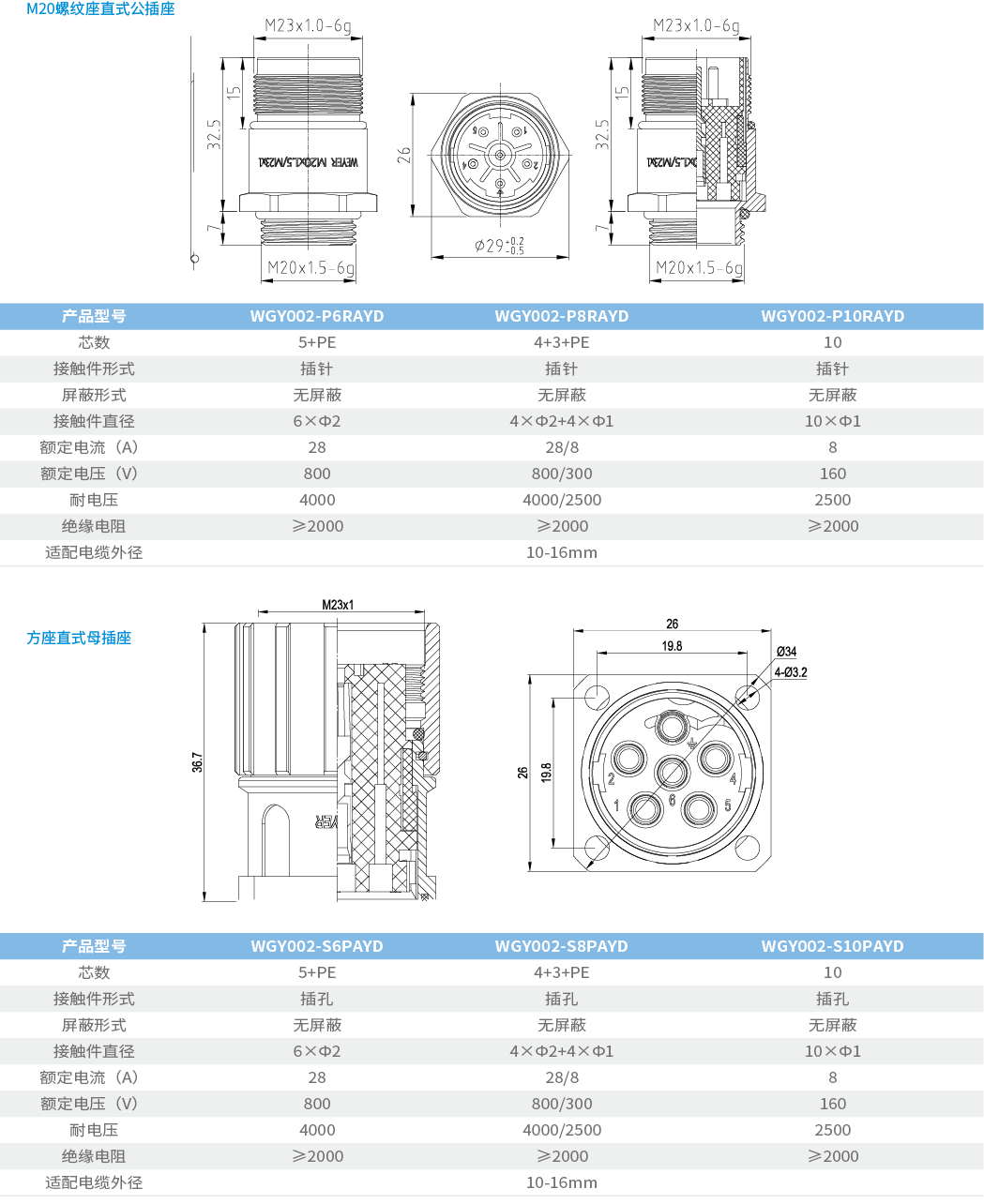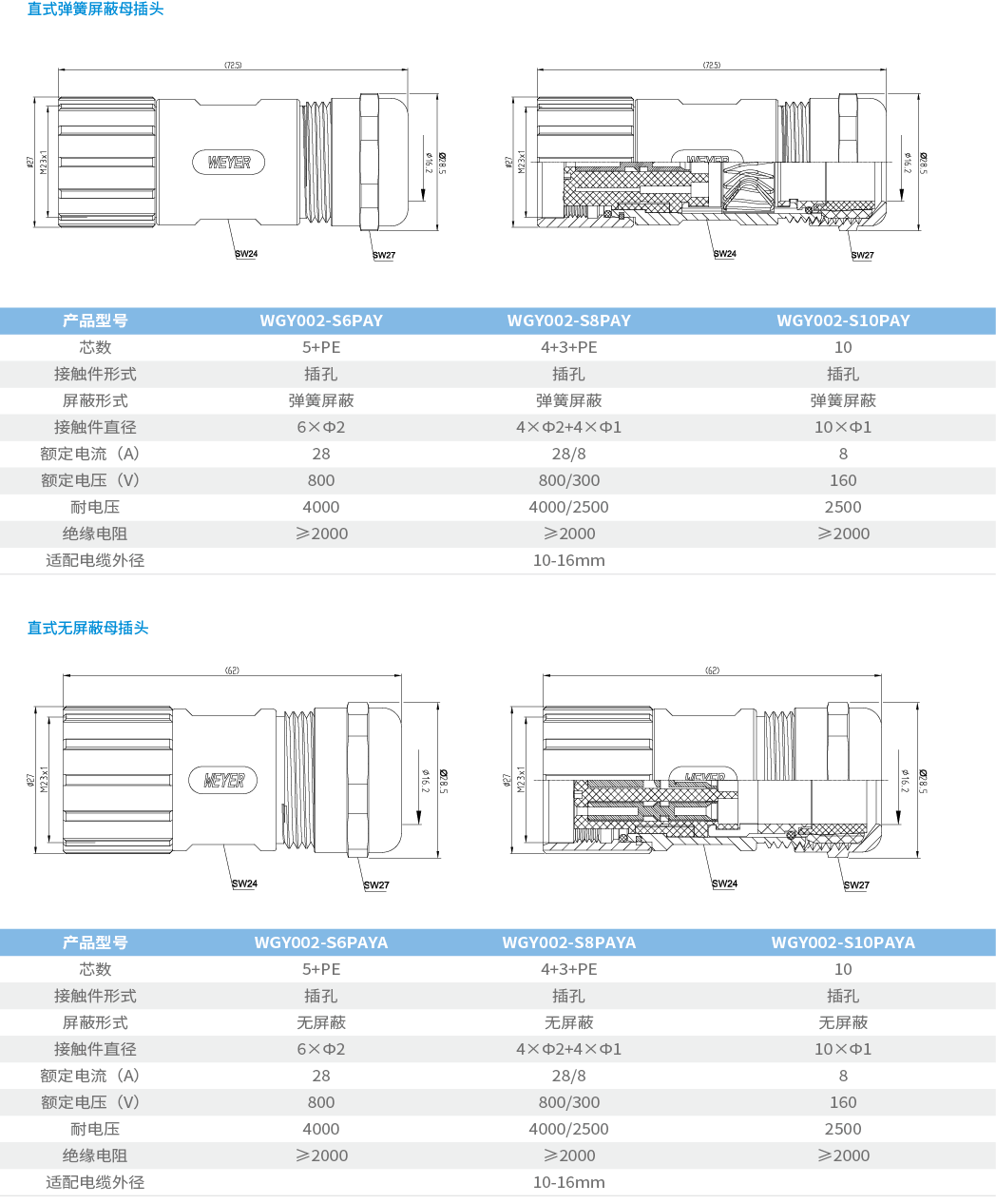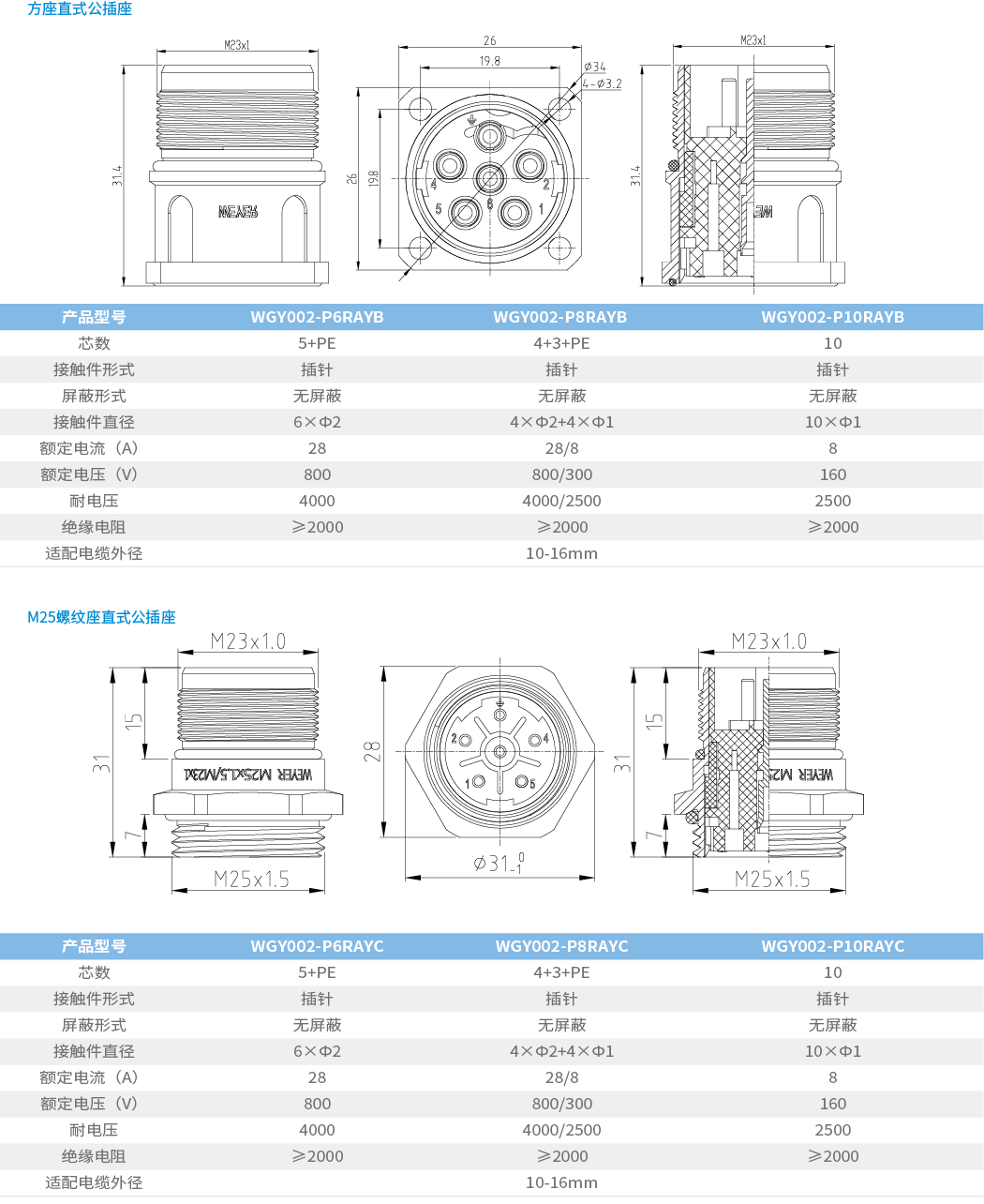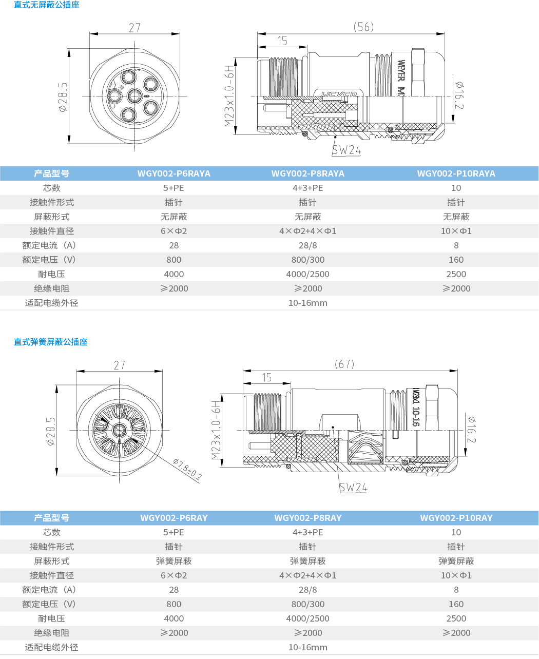 WGY002電連接器是標準化產品,對應M23系列電連接器,產品的結構特點: